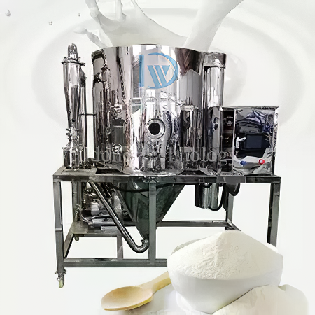 --1. Высокая скорость сушки. После распыления жидкого сырья его площадь поверхности значительно увеличится. Благодаря более высокой эффективности сушки, 95%-98% воды может испариться за несколько секунд. Время сушки очень короткое, подходит для термочувствительного сырья